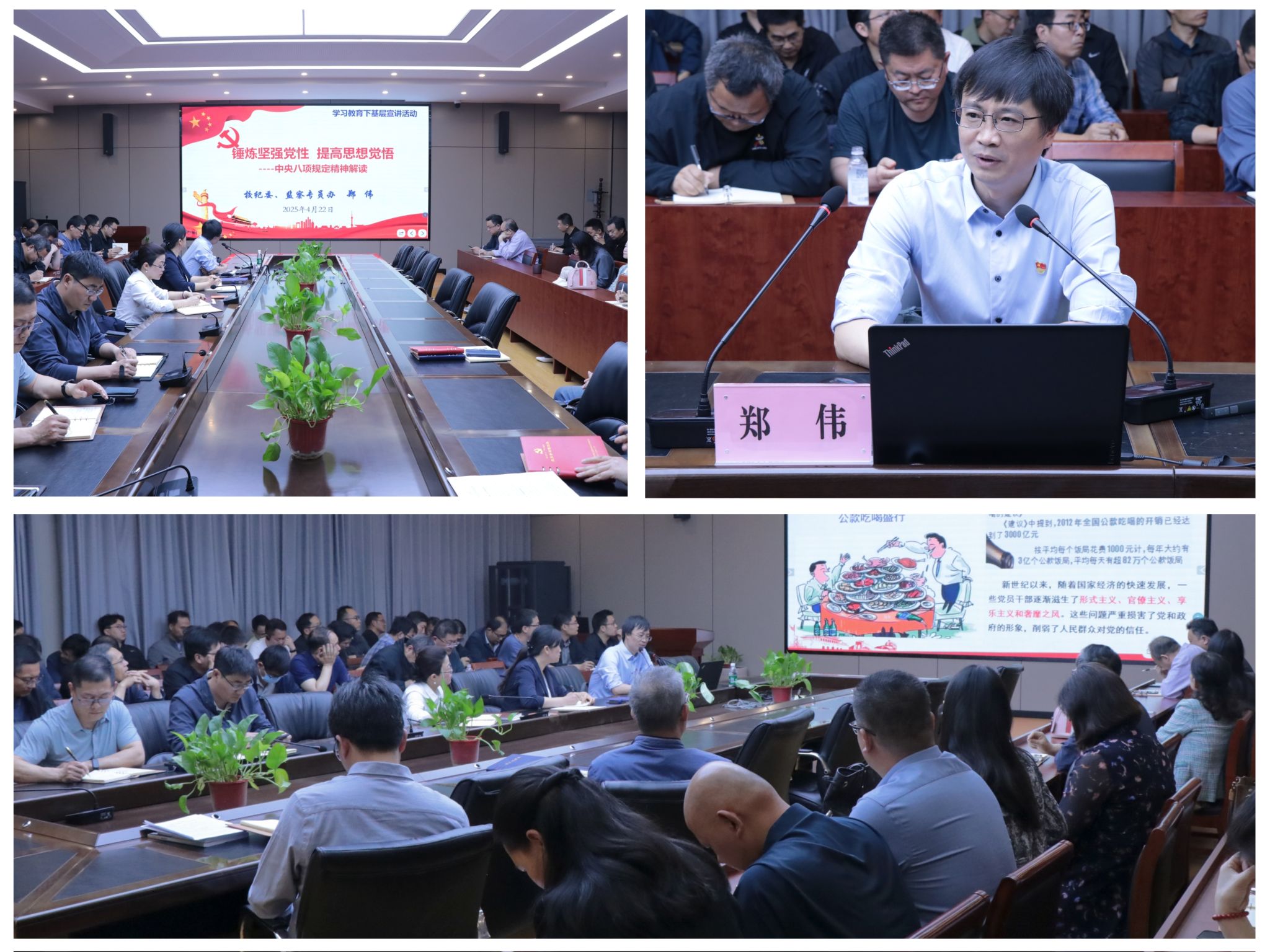 为进一步深化作风建设,推动全面从严治党向纵深发展,4月22日下午,澳门六合彩开奖结果 在院楼101会议室举办了深入贯彻中央八项规定精神学习教育专题宣讲会。澳门六合彩开奖结果 领导班子成员、全体教职工参加会议,校纪委、监察专员办主任郑伟担任主讲,为全体与会人员带来一场深刻的思想洗礼与纪律教育。