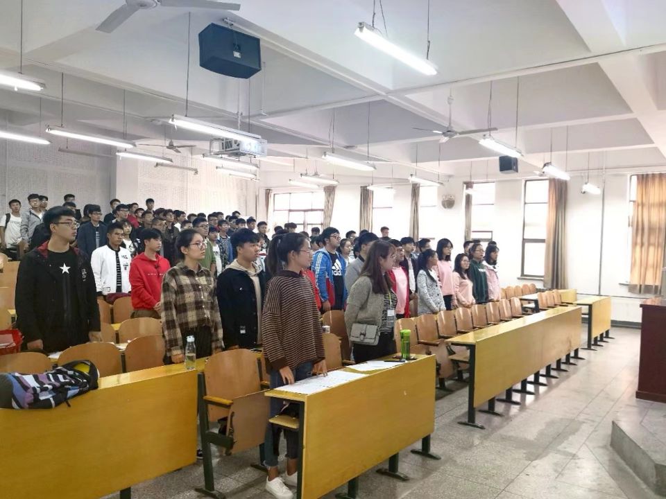 活动伊始,全体团员进行宣誓、重温誓词。宣誓后,王帅老师对团十八大精神内容以及团十八大的主题进行重点讲解,他提出同学们要理解并牢记习近平总书记所说的“扣好人生第一粒扣子”、“青春是用来奋斗的”等重要话语,在场学生都认真聆听并做好记录。此外,王帅老师强调每一个团员都要有角色意识,尽力做好自己的主责、主业。最后,王帅老师告诫大家要将团十八大的精神真正落实到实际行动中,不断鞭策自己成为有责任、有担当的青年。