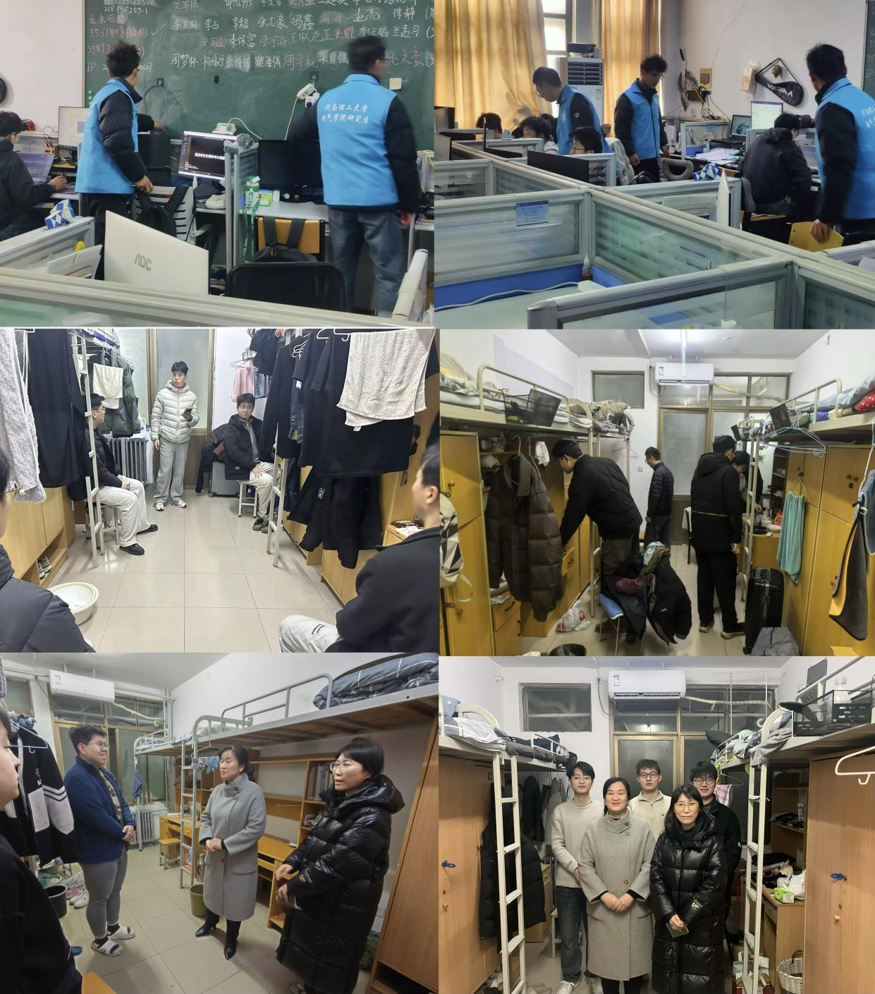 在学生宿舍,院党委副书记朱伶俐与辅导员梅苏蔓带领各班班长深入寝室,重点排查违规电器、私拉乱接电线、饲养宠物等行为。现场,老师们结合实例讲解校园安全规定、剖析违规危害,并通过拍照记录排查过程,将安全教育融入实际,从源头杜绝安全事故发生。