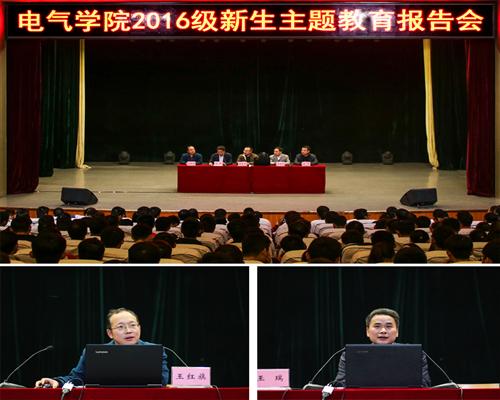 为了使16级新生能够更快的转变角色,更好的适应大学生活,引导学生树立远大目标,坚定理想信念,10月27日晚,澳门六合彩开奖结果 2016级新生主题教育报告会在小礼堂如期举办。澳门六合彩开奖结果 党政领导康全玉、王福忠、王瑞、钱伟、王红旗,16级辅导员及全体16级新生参加了报告会。会议由王瑞主持。