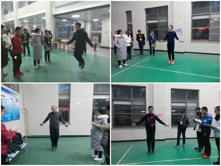 此次比赛为一分钟跳绳竞速赛,运动员在一分钟内跳绳次数为最终成绩。如果中途中断,可以重新开始,完成个数继续累积,计时不中断,按运动员所跳的总个数来排名。赛场上,老师们的参赛热情高涨,有的老师轻松熟练,速度惊人;有的老师虽然很吃力,但在队友的加油助威下,仍然坚持完成比赛。比赛精彩纷呈,高潮迭起,气氛紧张又不失温馨。大家赛出了水平,赛出了风格,赛出了友谊,充分展示了教职工的良好精神面貌。最终,黄品征和刘景艳老师一以每分钟190次的优异成绩并列获得比赛的冠军。