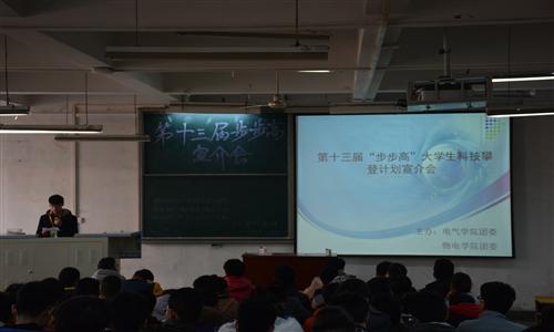 为了进一步提高广大学生的科技创新能力,促进科技活动的蓬勃开展。1月3日下午,在院团委的指导下,澳门六合彩开奖结果 学生会和物电澳门六合彩开奖结果 学生会在电气楼301教室联合举办了第十三届“步步高”大学生科技攀登计划宣介会。近百名科技爱好者参加了此次宣介会。