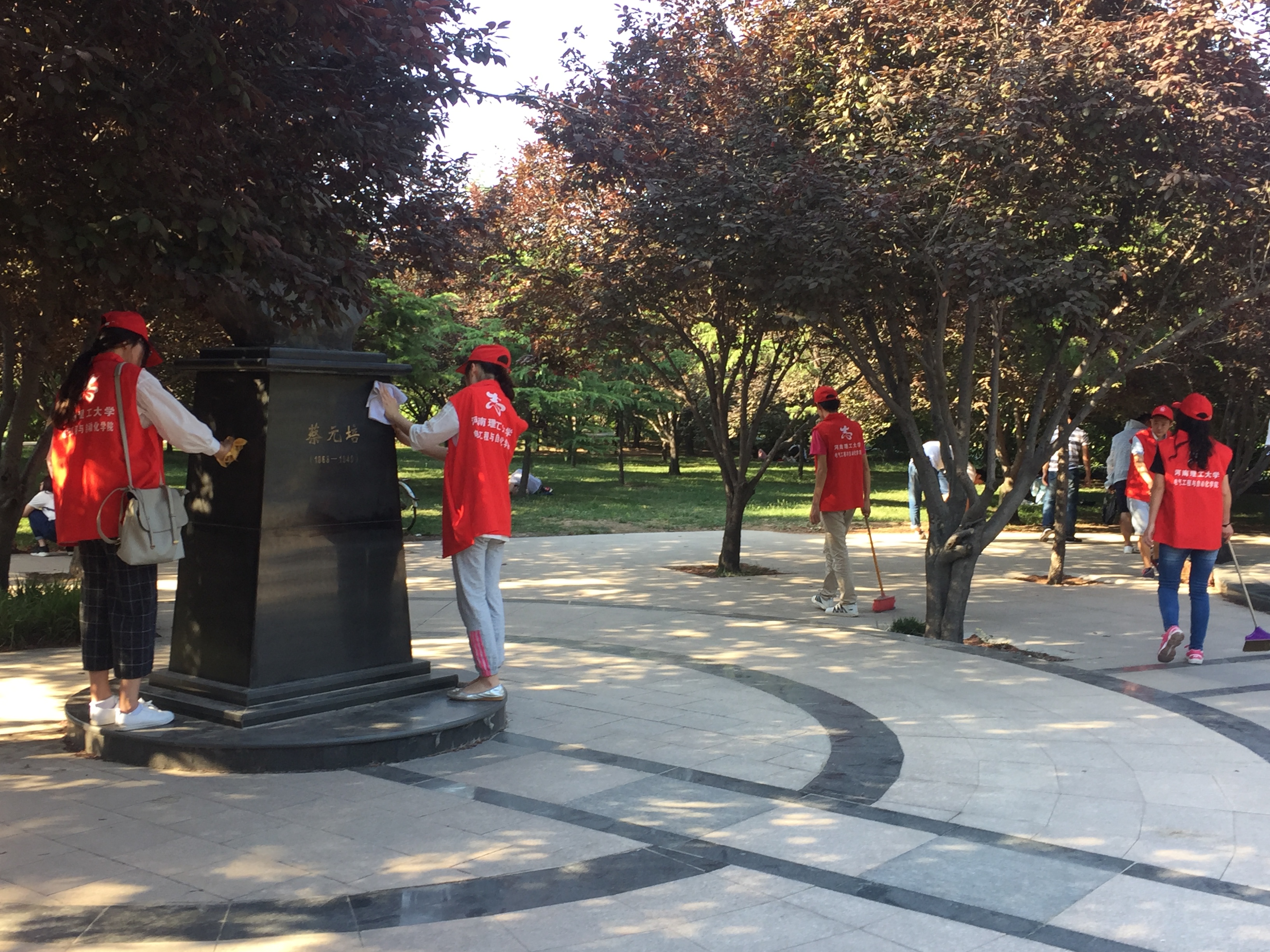 此次志愿服务活动在闻涛林进行。党支部成员在电气楼集合完毕,随后一同前往志愿服务地点。活动伊始,参与人员依照清扫工具分成三组,分别进行落叶果屑清扫、垃圾拾捡、垃圾桶修整。活动中,一些党员同志为大家讲述雷锋助人、红军长征等事迹,同志们互相鼓励,干劲十足,活动结束后,党员同志一同合影留念。