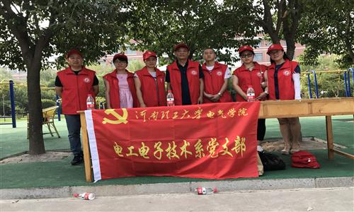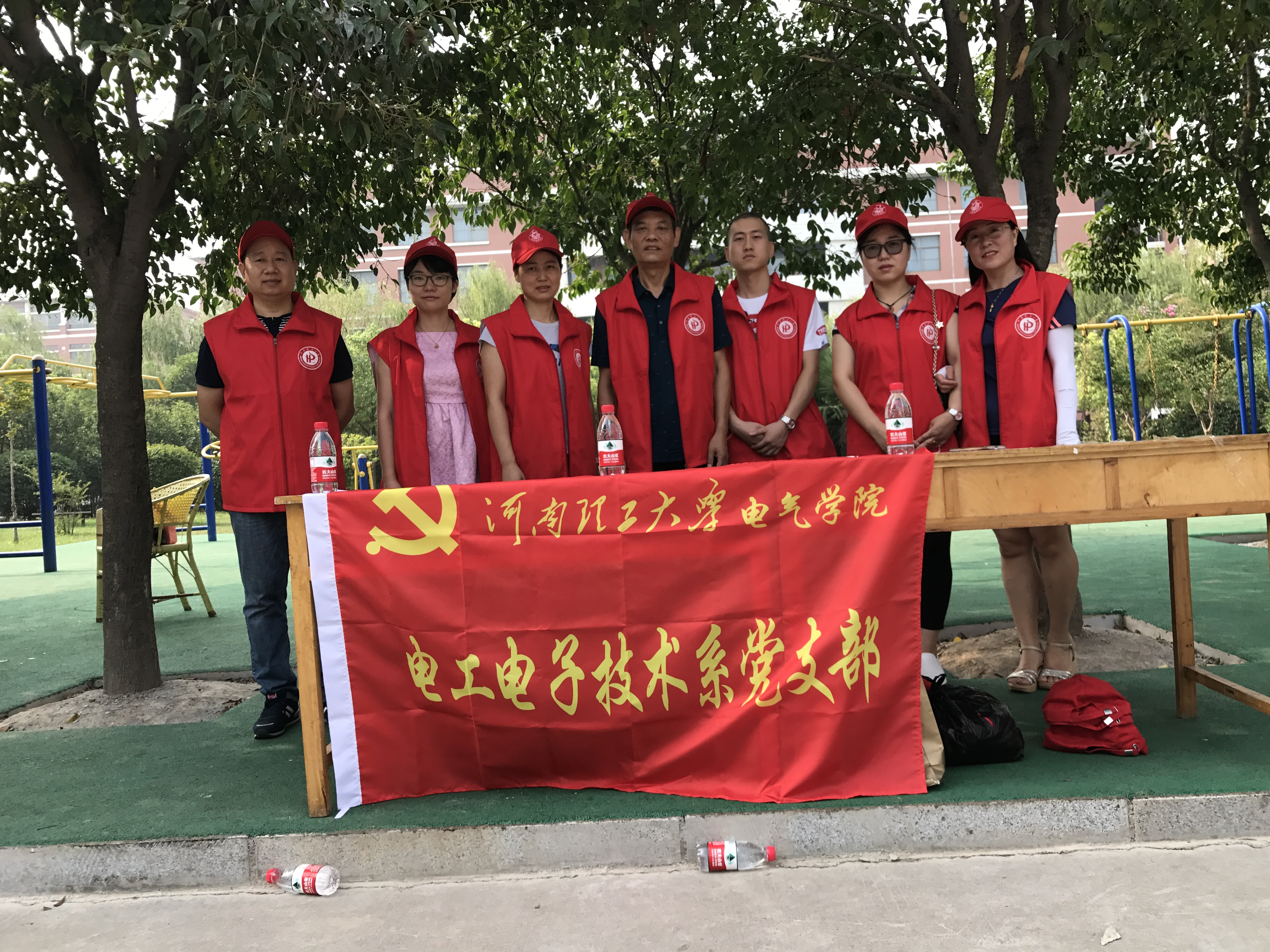 为培育和践行社会主义核心价值观,加强校园精神文明建设,扎实推进我校精神文明单位的创建工作,2017年8月12日上午,澳门六合彩开奖结果 电工电子技术系党支部的党员同志们戴着小红帽,在河南理工大学的滨河花园小区开展了“迎新风,创文明---志愿服务我先行”的主题党日活动。