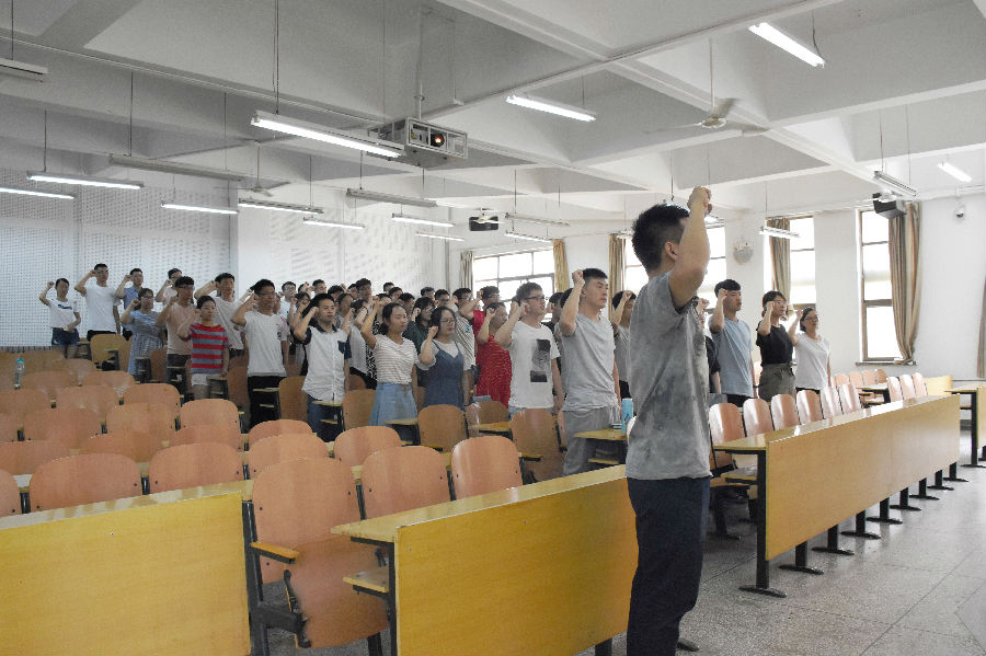 王福忠首先讲述了党员发展的程序,发展党员工作是党的建设工作的重要组成部分,也是基层党组织的一项经常性工作。一名优秀的党员不仅是组织上入党,更要思想上入党。树立正确的入党动机是党员高素质行为的重要表现,是党战斗力的重要来源。他还通过事例列举了在申请入党过程中一些常见问题及入党材料书写的注意事项。他讲到,一名优秀的共产党员要树立共产主义崇高理想信念,认真学习马克思主义理论,贯彻落实好习近平新时代中国特色社会主义思想,用党的思想理论武装头脑并指导自己的实践,在学习和生活中起到模范带头作用,为实现中华民族的伟大复兴的中国梦不懈奋斗。王福忠还以他几十年的工作经验和人生阅历,对研究生党员提出的问题做出了细心、严谨、耐心的解答。现场气氛热烈,研究生党员们都专注倾听,认真做好笔记。培训最后,王福忠带领党员重温入党誓词,铿锵有力的宣誓声响彻整个教室,这也是党员们对党的再一次庄严承诺。