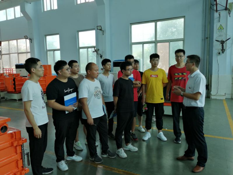 为更好地培养专业学位硕士研究生的专业技能,增强学生的动手实践能力,将科研理论知识与产品研发相结合,使学生学习认识到高新技术企业的创新生产需要。澳门六合彩开奖结果 组织18级专业学位硕士研究生入驻河南理工大学-华飞电器专业实践基地进行了暑期专业实践。初到公司,公司的工作人员给同学们讲解了澳门六合彩开奖结果以及规章制度,使大家尽快融入到公司大家庭中,确保同学们在实践期间的人身财产安全。在企业领导宋经理和澳门六合彩开奖结果 朱老师的带领下,同学们分别到公司的变频调速室、自动控制室以及提升机电控室进行参观,学习了解了公司的提升机装置、交直流电机以及基于PLC的变频电控装置。在企业工程师的指导下,同学们学习了变频器装置的工艺生产、产品调速与模块检测方面的工作,对变频器控制装置的算法构建与操作规范有了一定了解,对低压配电柜与变频器的功率单元进行了装配工作。