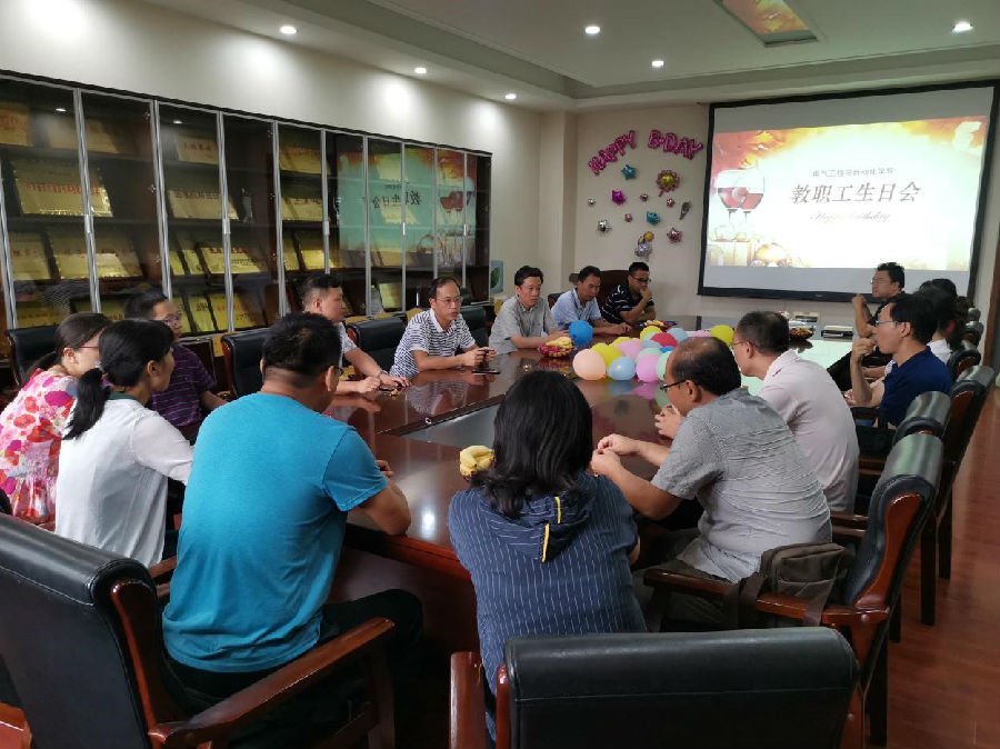 9月10日下午,恰逢第35个教师节,澳门六合彩开奖结果 工会在电气楼215室举办教职工集体生日会,9月份生日的13位“寿星”,院党委书记欧阳文峰,党委副书记、工会主席王瑞,副院长王海星参加了此次生日会。