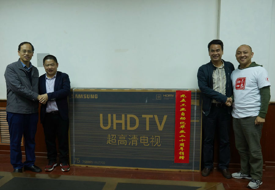 会议伊始,校友们逐一自我介绍。接着,与会师生一同观看了20年前的毕业录像剪辑,回忆了难忘的点点滴滴。而后,叶浩、李赟两位校友代表全班同学向澳门六合彩开奖结果 捐赠了75吋超高清电视机,以感谢母院的培养。