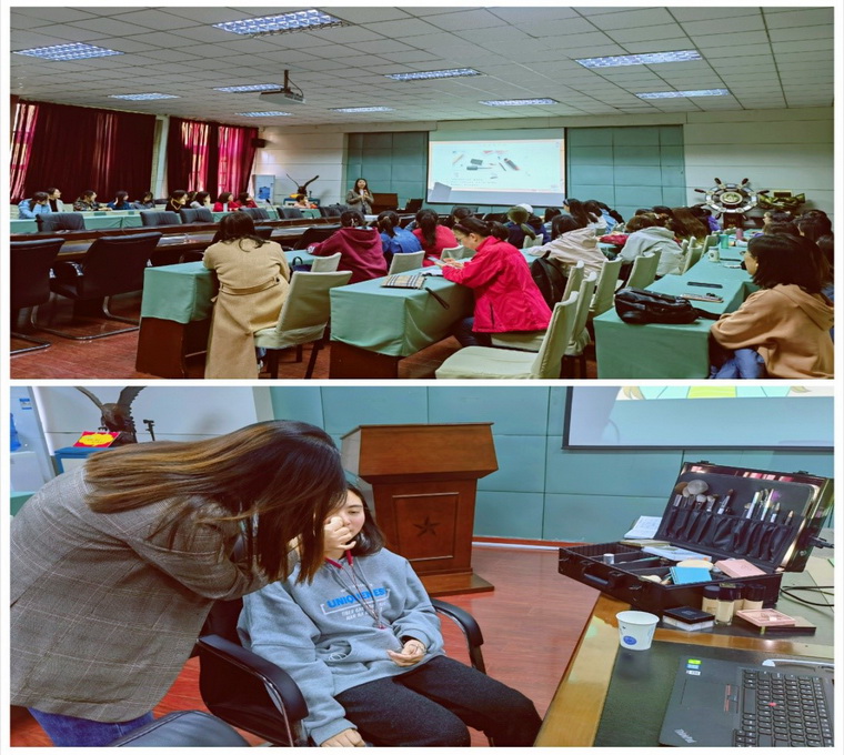 3月23日,由澳门六合彩开奖结果 工会主办的“知性优雅女性形象设计”讲座在院101会议室举行。本次培训特邀请川十影视工作室首席化妆师陈雪姣女士为澳门六合彩开奖结果 女教工及部分学生会干部讲授基础形象设计的技巧。