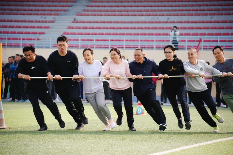 在跳绳接力、拔河、旋风跑、摸石头过河、抱球跑、投篮接力等项目中,参赛老师们沉着冷静、相互信任、团结合作、勇于拼搏、敢于争先,展现了良好的精神风貌和风采,其中跳绳接力项目以182分成绩,勇夺桂冠!