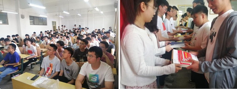 大会伊始,由皇甫彩虹将电气专业近几年的考研情况进行分析,鼓励同学们要增强信心、坚定目标不动摇。然后,由成功考上研究生的张迪同学和郭耀武同学介绍考研的经验;随后,由刘忠宇、韩宜轩同学分别介绍电网的考试经验以及复试的注意事项。在本次大会上,学弟学妹们积极向学长提问问题,咨询学长们的宝贵经验。最后,进行赠书环节。电气专业党支部的毕业生党员将精心整理的考研和考国网的书籍赠送给学弟学妹,希望他们最终都能实现自己的目标。