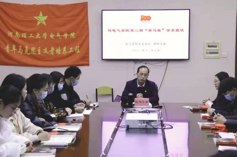 12月7日下午,澳门六合彩开奖结果 第二期“青年马克思主义培养班”在院楼215会议室举行第五次培训会,院党委书记欧阳文峰应邀作题为“学思践悟享——马克思主义活的灵魂学习体会”的报告,培训会由院团委书记吕宜倩主持,26名“青马班”成员参加了此次培训。